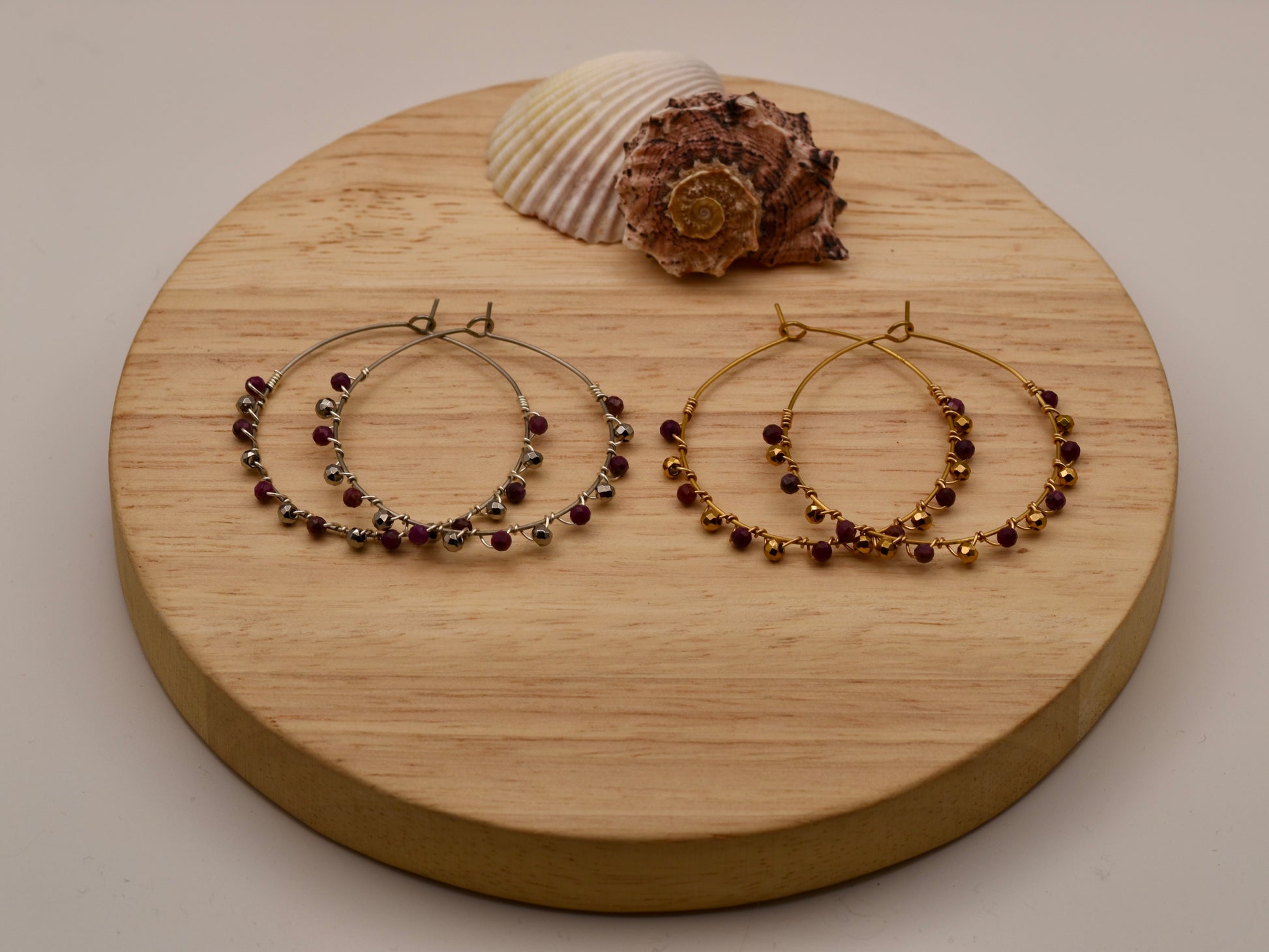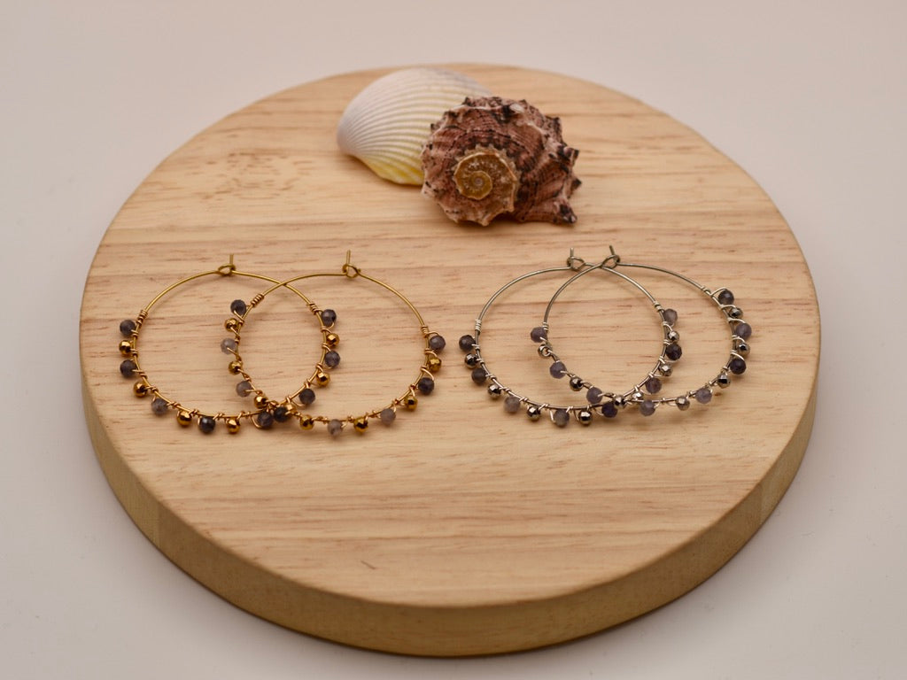 Beautiful earrings featuring bright semi-precious stones and soft flows of gold or silver. Their rich tones give a cozy winter feel, making them perfect for both elegant occasions and everyday wear.